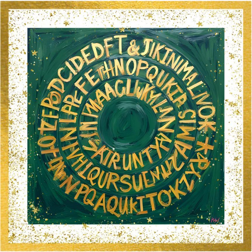 This tableau celebrates the power of a single letter, a simple symbol, yet rich with identity.