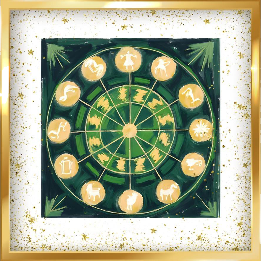 The twelve symbols form a wheel of light, reminding us that we are all guided by a unique constellation , the one that shapes our birth, our essence, and our inner path.
